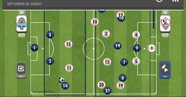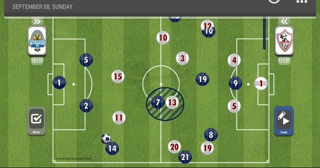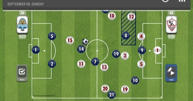 التركيز كله أنصب على ناحية شيكابالا، حيث يهبط الأخير إلى العمق قليلا ليسحب معه الظهير فتُلعب الكرة الكويلة خلف الظهير لأوباما والذي بدوره يسحب معه أحمد أيمن منصور فيبقى مصطفي محمد وحيدا مع علي جبر.