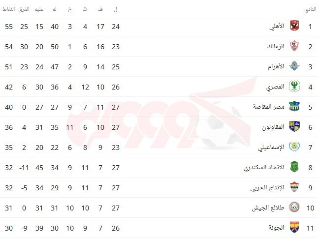 جدول ترتيب الدوري المصري بعد فوز الأهلي على الاتحاد السكندري