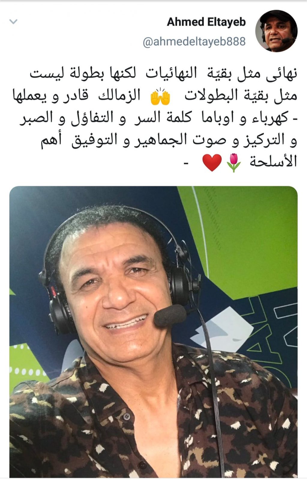 بينما غرد محمود العسيلي: “النهارده قلبي معاك يا زمالك .. موسم كبير و فرقة رجالة و إدارة مستقرة .. متفائل و حاسس إن الزمالك هيجيب البطولة النهارده إن شاء الله”.