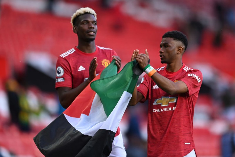 قام الثنائي بول بوجبا وأمادو دياللو نجوم فريق مانشستر يونايتد برفع علم فلسطين عقب مباراة فريقهم أمام فولهام، ضمن منافسات الجولة الـ 37 من بطولة الدوري الإنجليزي، والتي انتهت بالتعادل الإيجابي بهدف لكل فريق.