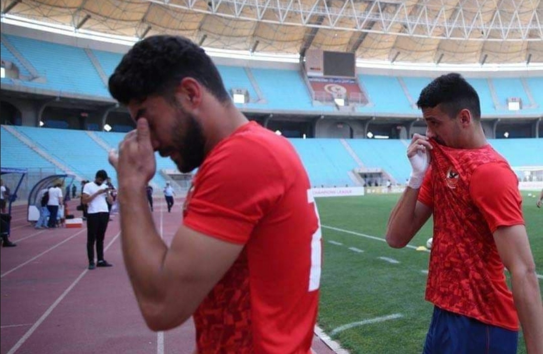 اختناق لاعبي الأهلي ومغادرة ملعب رادس بسبب الغاز .. صور