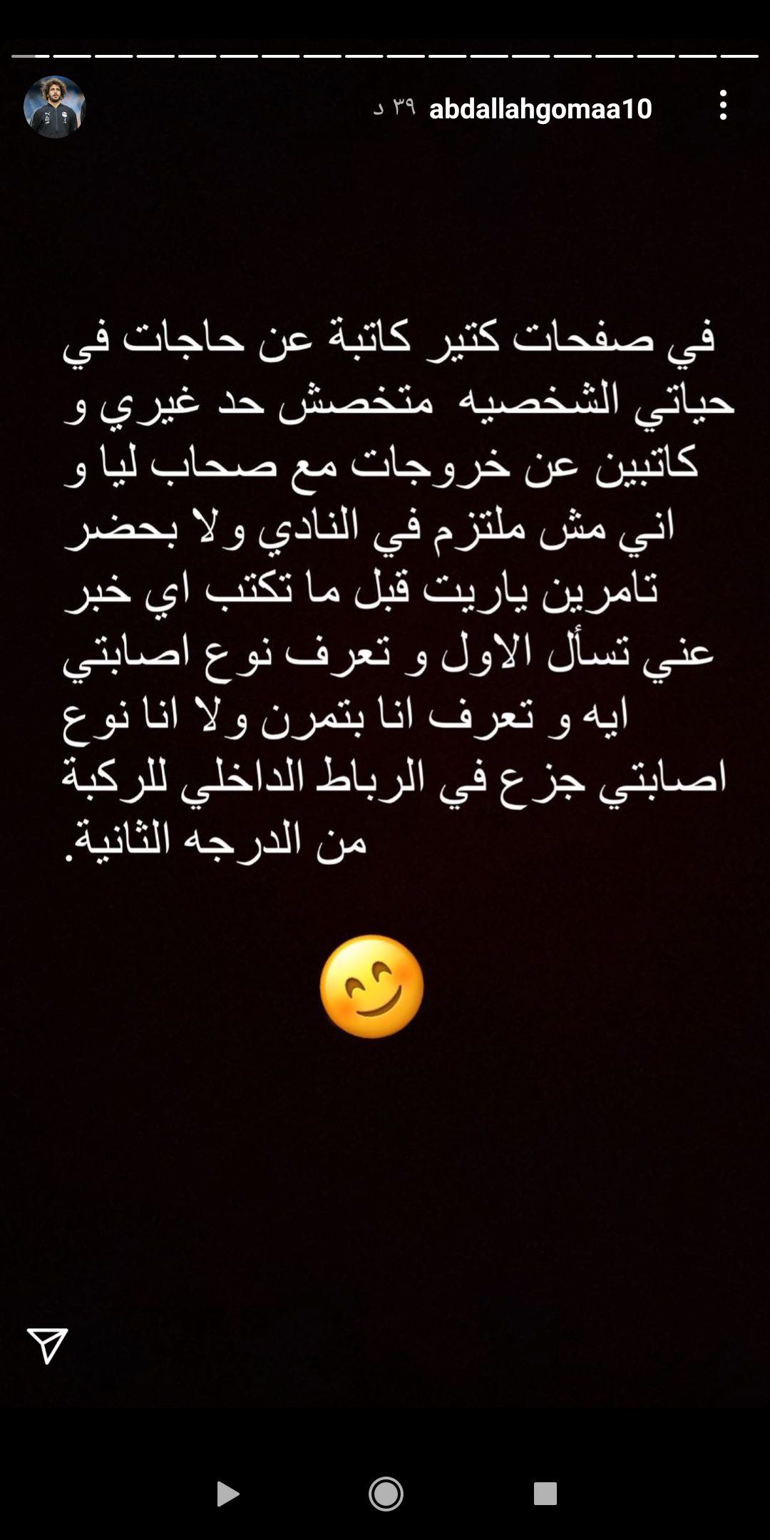 وكتب عبد الله جمعة عبر الاستوري الخاص به بموقع التواصل الاجتماعي “إنستجرام”: “في صفحات كتير كاتبة عني حاجات في حياتي الشخصية متخصش حد غيري، وكاتبين عن خروجات مع صحاب ليا وإني مش ملتزم في النادي ولا بحضر التدريبات”.