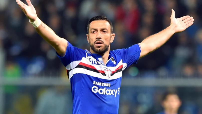 Sampdoria's Italian forward Fabio Quagliarella reacts during the Italian Serie A soccer match Uc Sampdoria vs Ac Milan at Luigi Ferraris Stadium in Genoa, Italy, 17 April 2016 ANSA/SIMONE ARVEDA