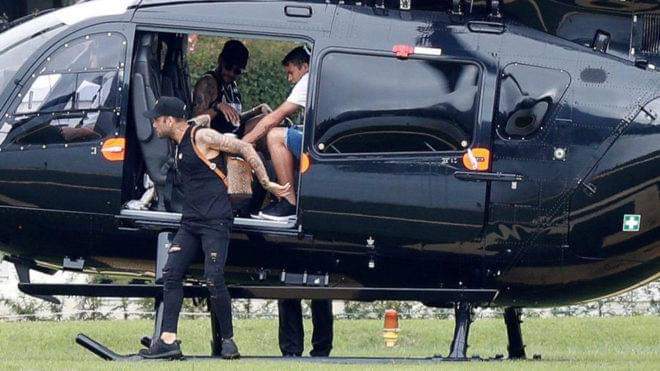 كشفت الصحيفة عن وصول نيمار إلى مجمع جرانجا كوماري في وقت لاحق عبر طائرة هليكوبتر إلى جانب آرتور ميلو وداني ألفيش وتياجو سيلفا من أجل التدريبات.