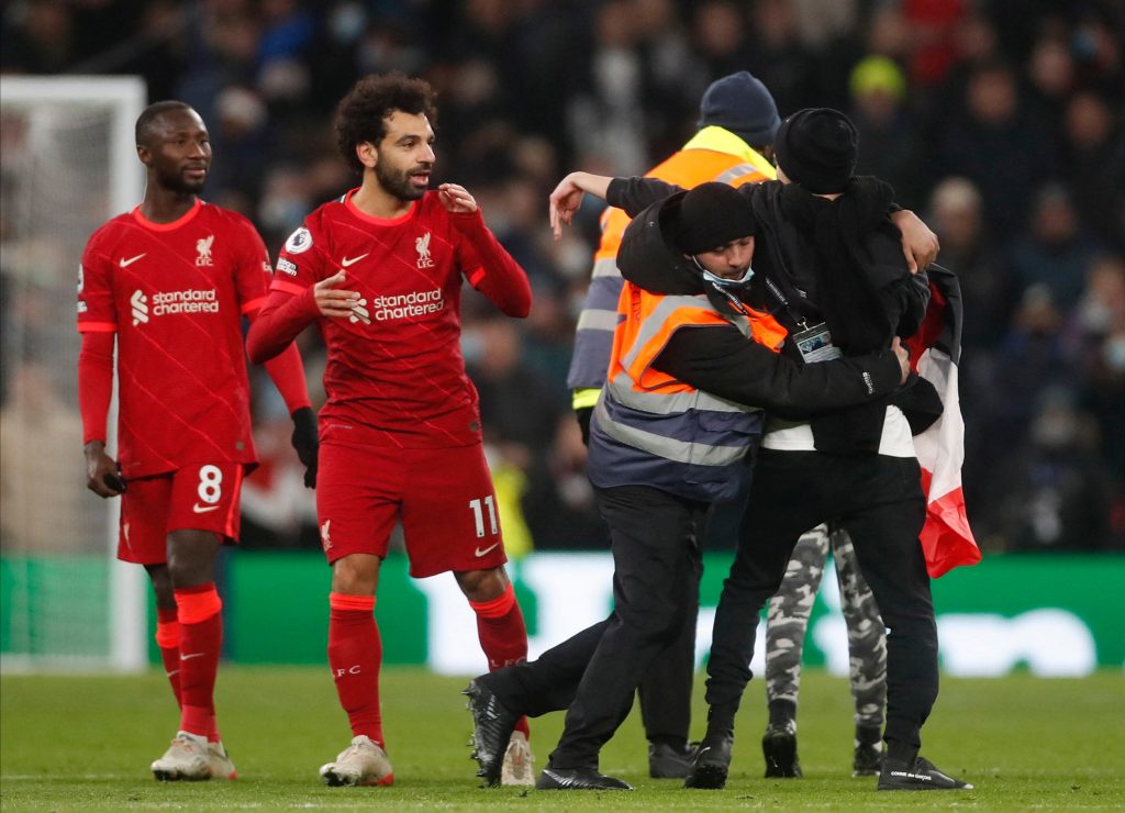 قام أحد المشجعين باقتحام ملعب مباراة ليفربول وتوتنهام، اليوم الأحد، عقب انتهاء اللقاء الذي جمع بينهم في الدوري الإنجليزي.