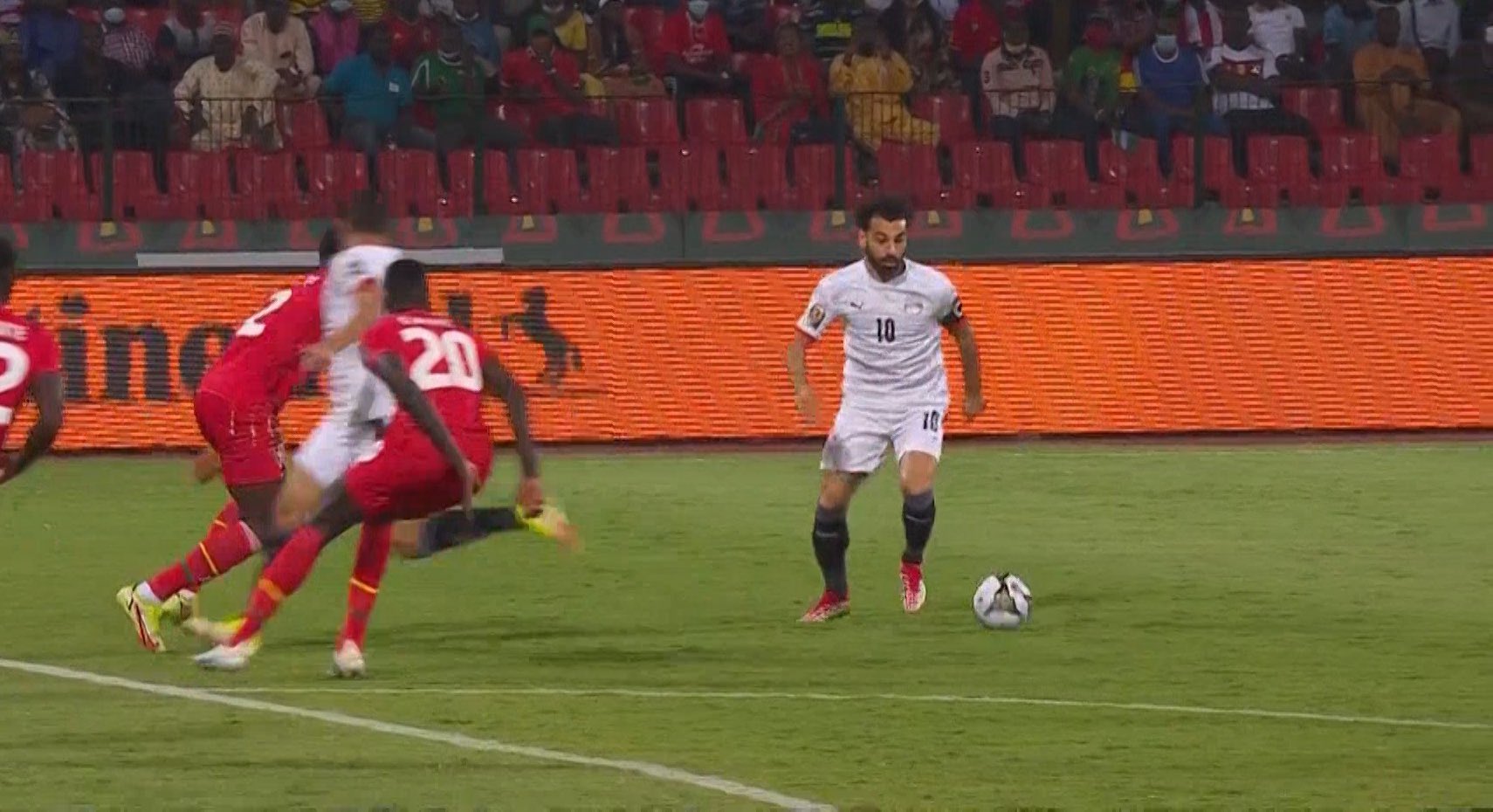 واستمر المنتخب المصري في الضغط على نظيره غينيا بيساو، عن طريق العديد من الفرص الهجومية، حيث سدد عمرو السولية كرة قوية في الدقيقة 44 ولكنها مرت بجوار المرمي.