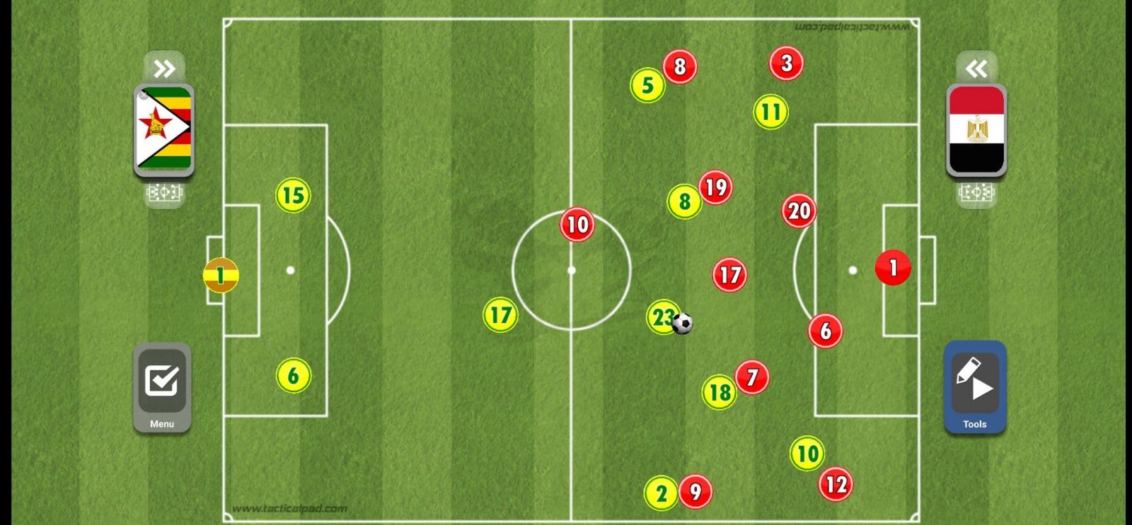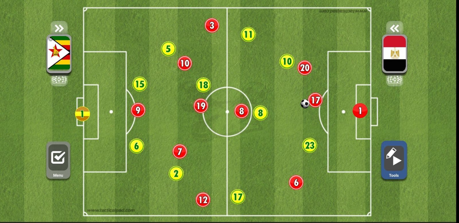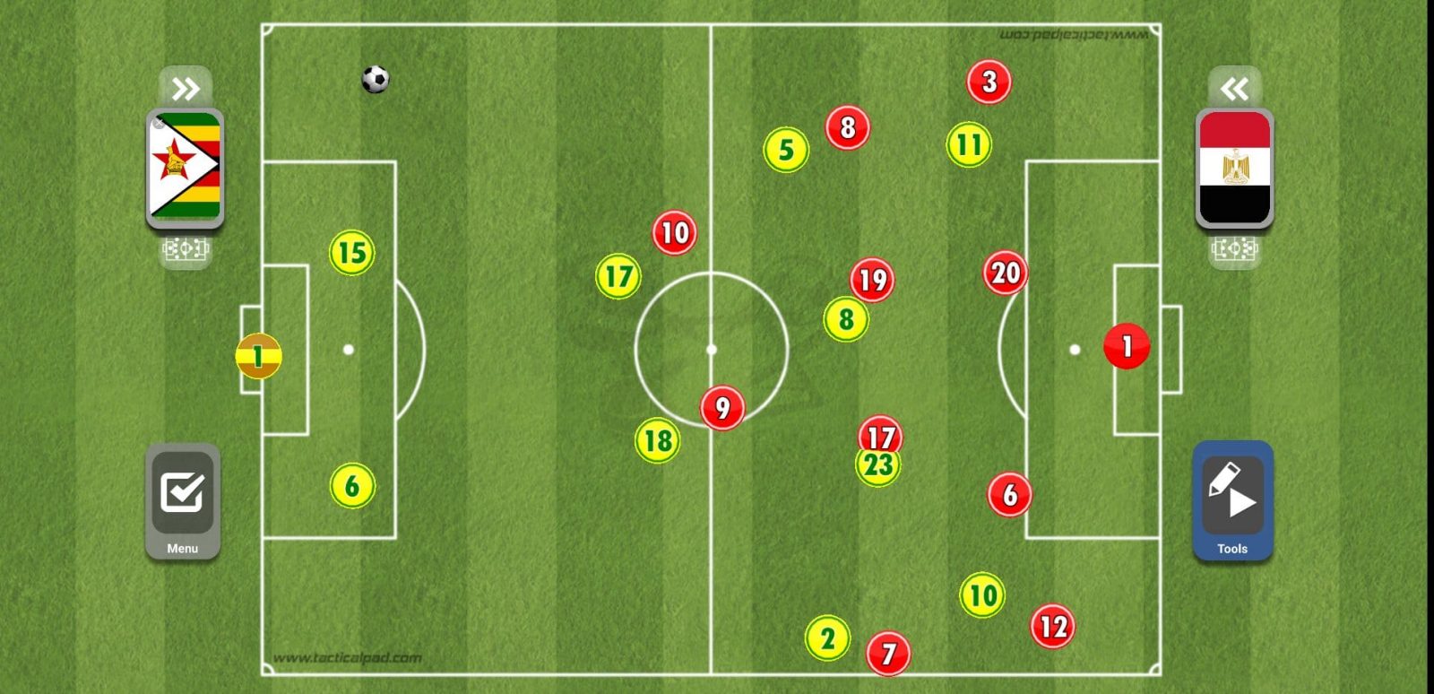 ويحاول لاعبو المنتخب المصري بعدها أن يضعوا أحد الأظهرة في موقف مثالي لإرسال العرضية داخل منطقة الجزاء.