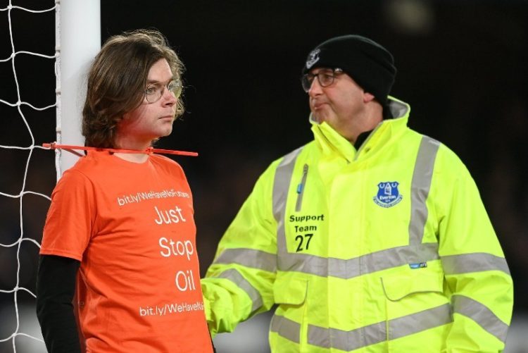 وتوقف لقاء إيفرتون ونيوكاسل لعدة دقائق بسبب اقتحام أحد الجماهير لملعب المباراة وتقييد نفسه في القائم، حيث كان المشجع مرتديًا قميصًا يحمل عبارة “فقط، أوقفوا البترول”.