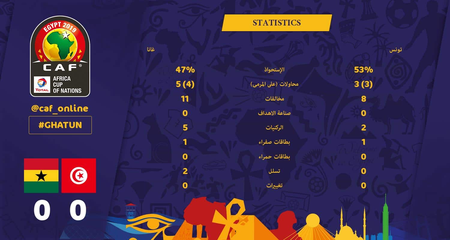 وقام الاتحاد الإفريقي “كاف” بنشر احصائية الشوط الأول من المباراة على حسابه الرسمي “تويتر”
