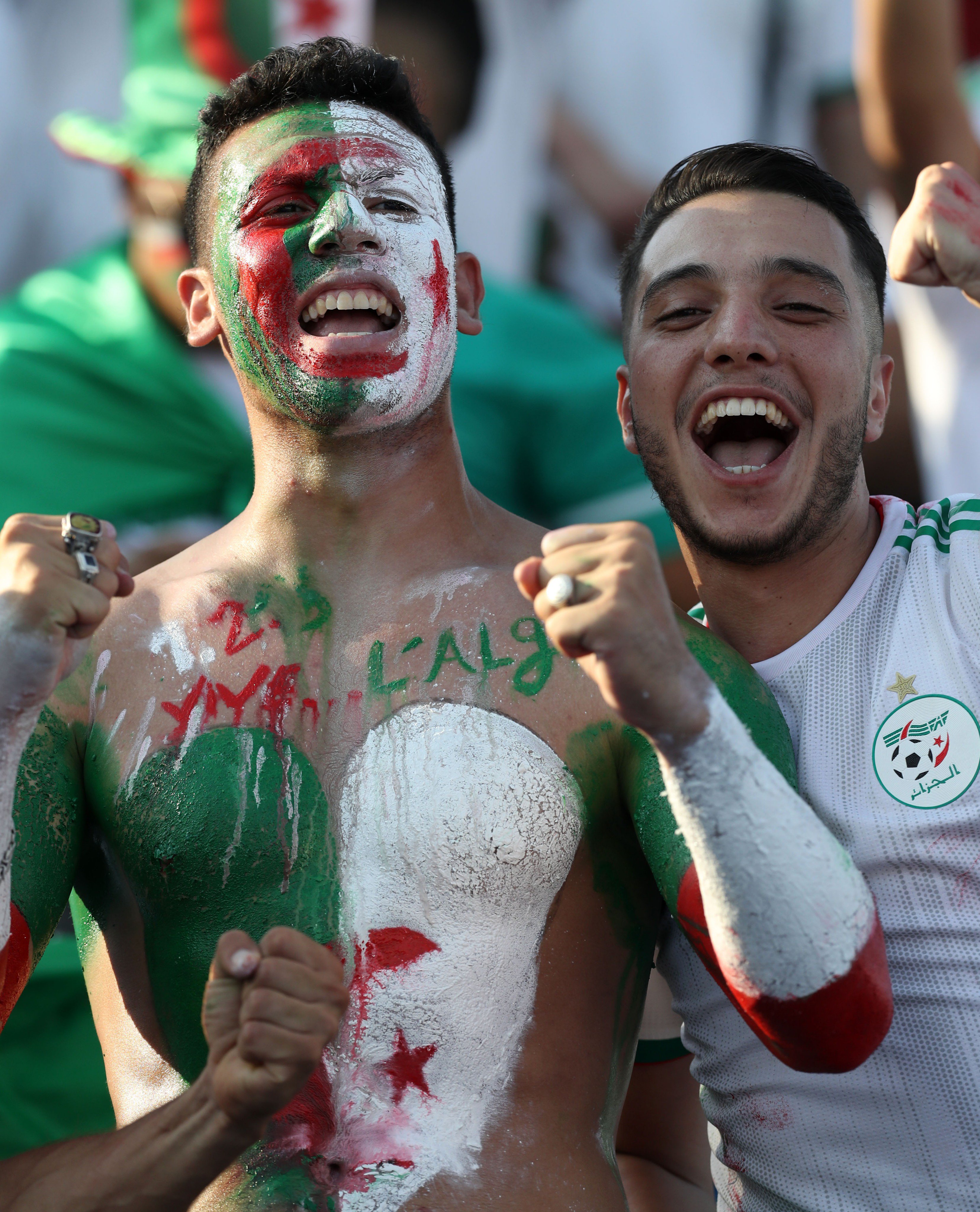 وتشهد الساعات الحالية دخول الجماهير إلى الملعب مع إجراءات أمنية مشددة، وظهرت الجماهير الجزائرية بكثافة في محيط الملعب تجوب الشوارع بالأعلام مع ترحاب شديد من الجماهير المصرية.