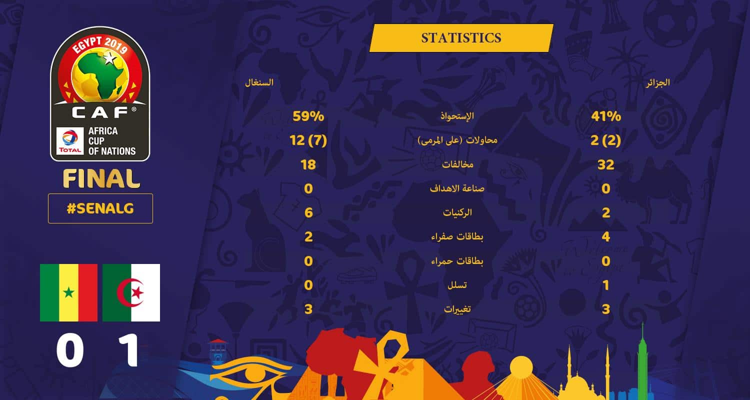 ونشر الاتحاد الإفريقي على حسابه بموقع التواصل الرسمي “تويتر” باحصائية المباراة بين الفريقين.