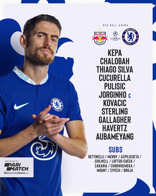 و يجلس على دكة البدلاء: ميندي – ازبليكويتا – تشيلويل – بيتينلي – لوفتس-تشيك – زكريا – تشكويميكا- مونت – زياش – بورخا.