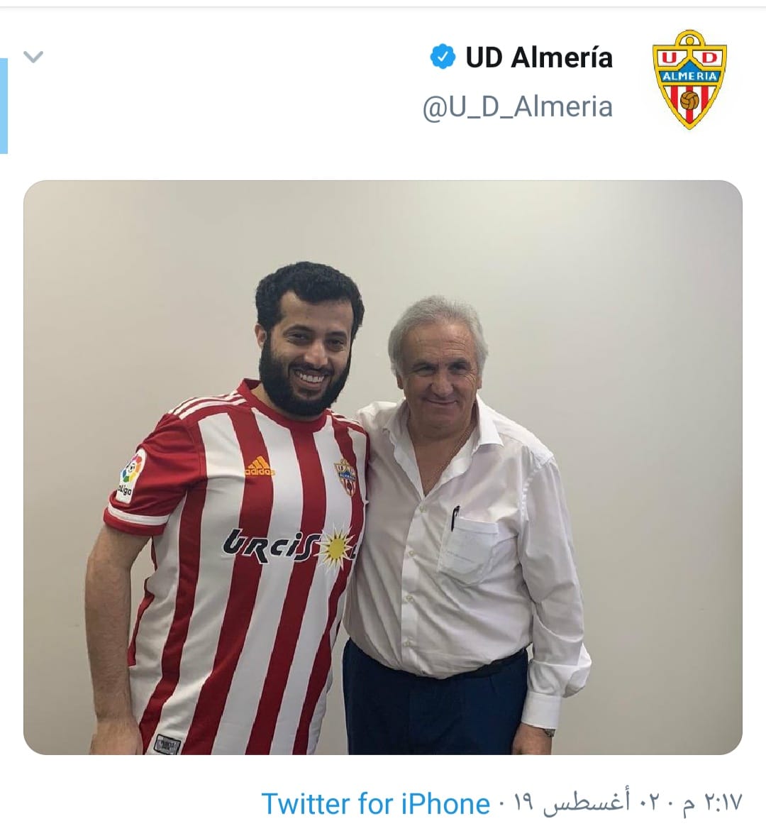 تولى تركي آل الشيخ رئيس مجلس الهيئة العامة لوزارة الترفيه بالسعودية ملكية نادي ألميريا الإسباني، بعدما تمت عملية البيع في حضور المالك السابق للنادي ألفونسو جارسيا، الذي تولى ملكيته لمدة 16 عامًا.