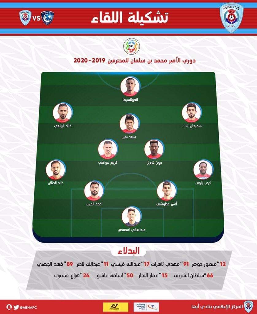 وعلى الجانب الآخر أعلن عبد الرزاق الشابي عن تشكيلة فريقه أبها والتي جاءت كالتالي: