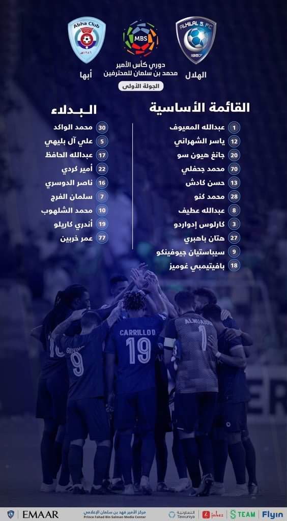وضم تشكيل الهلال السعودي كل من: