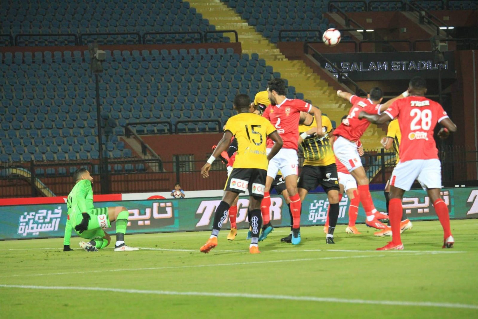 بينما حرم مدافع الإنتاج رمضان صبحي من احراز الهدف الأول من جملة رائعة بينه وبين حسين الشحات في الدقيقة 8.
