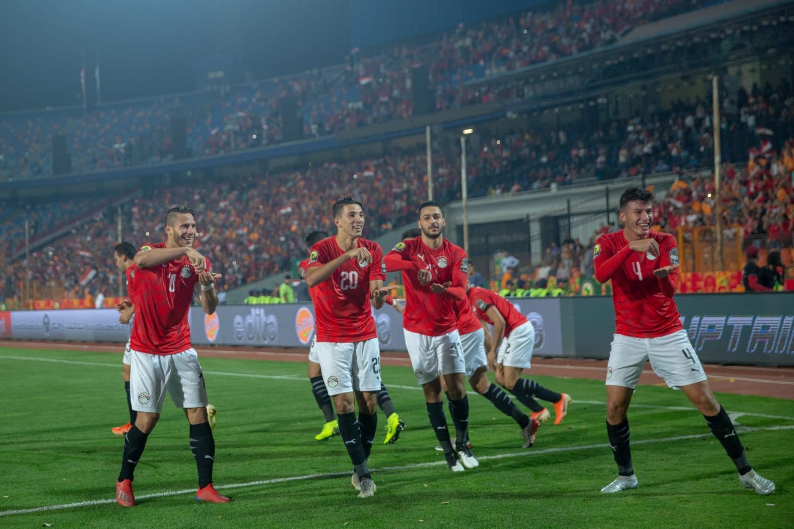 ونشر الحساب الرسمي للاتحاد الإفريقي لكرة القدم “كاف”عبر موقع التواصل الاجتماعي “تويتر” صورة لاحتفال لاعبي المنتخب وكتب عليها: “لاعبو منتخب مصر يساندون زميلهم المصاب طاهر محمد طاهر بالاحتفال على طريقته الخاصة”.