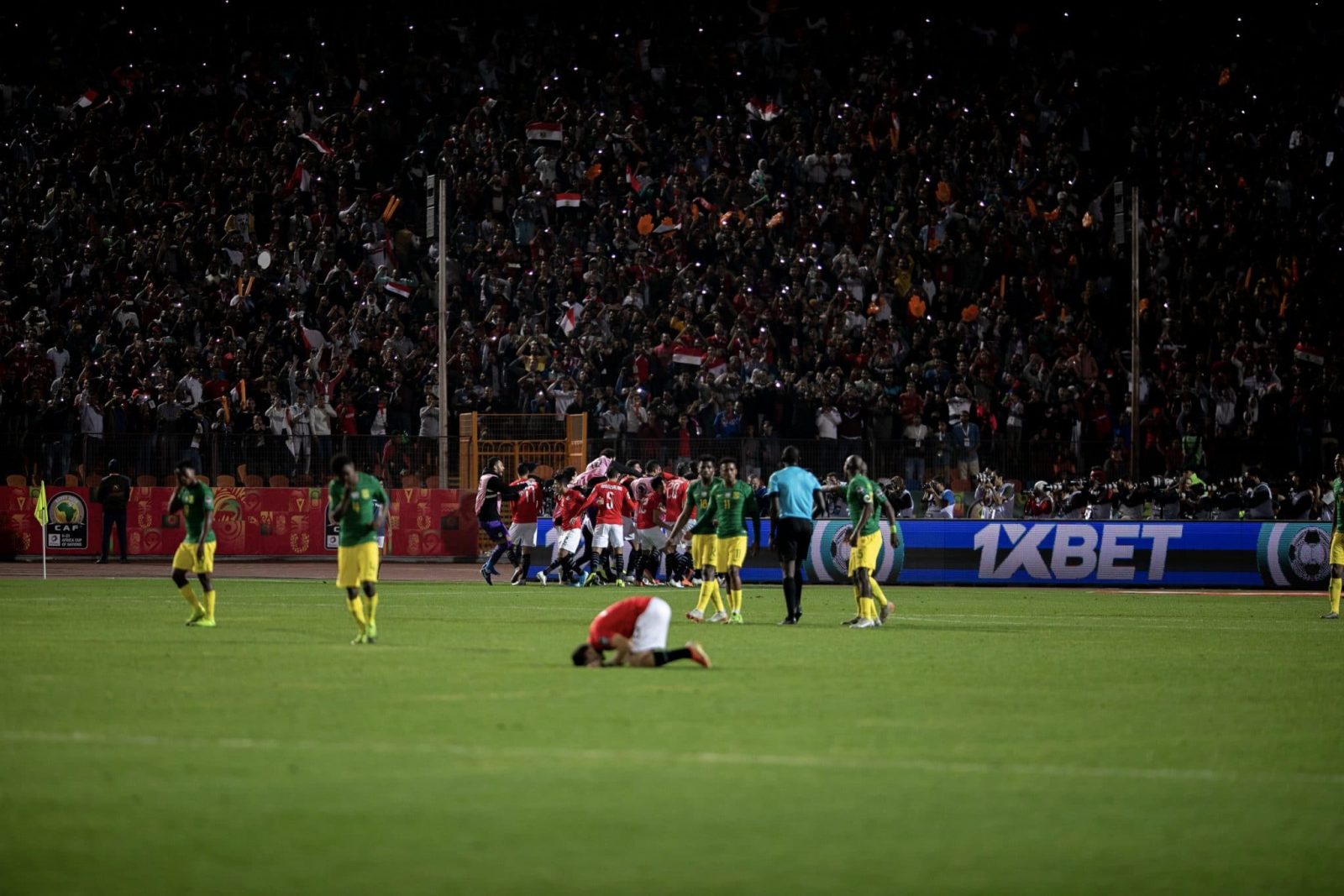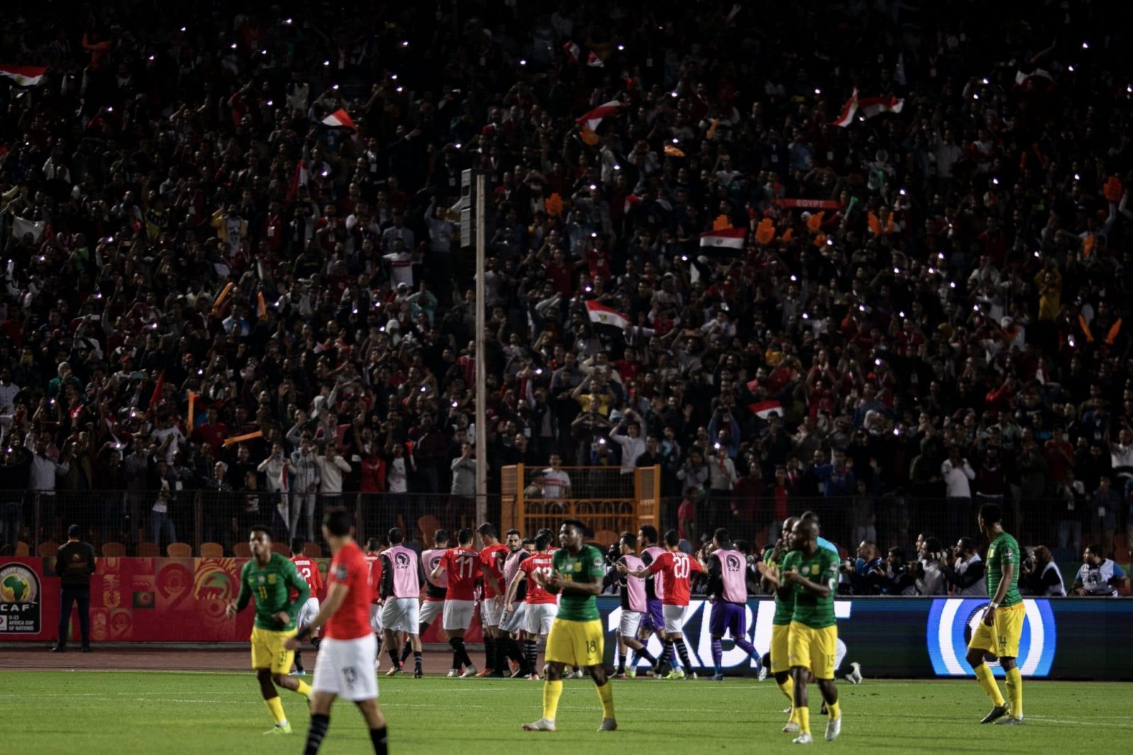 احتفل لاعبو منتخب مصر الأوليمبي تحت 23 سنة، مع الجماهير المصرية المتواجدة في استاد القاهرة، بالتأهل إلى أولمبياد طوكيو 2020، وكذلك المباراة النهائية من بطولة الأمم الإفريقية تحت ٢٣ سنة.
