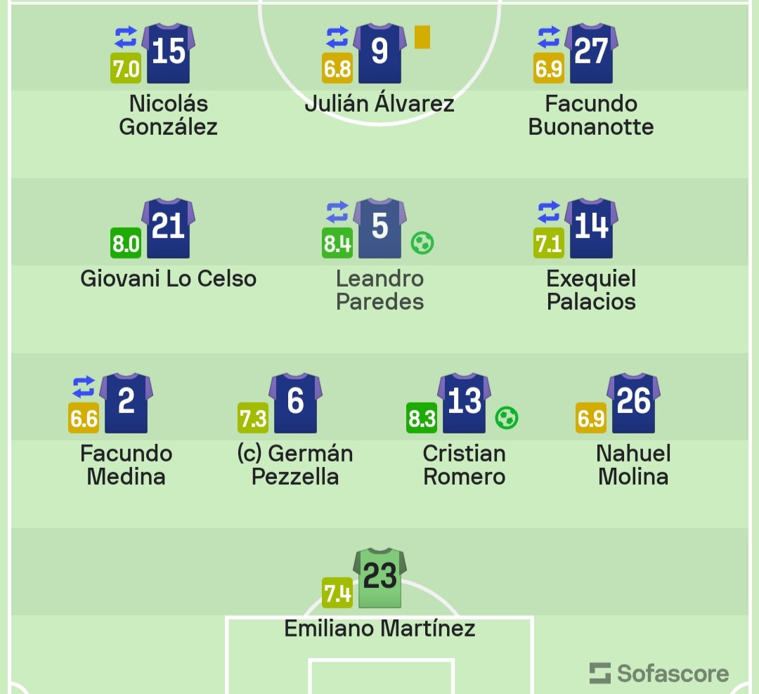 وجاءت ثنائية الأرجنتين اليوم عن طريق، لياندرو باريديس وكريستيان روميرو في الدقائق 38 و55 على التوالي.