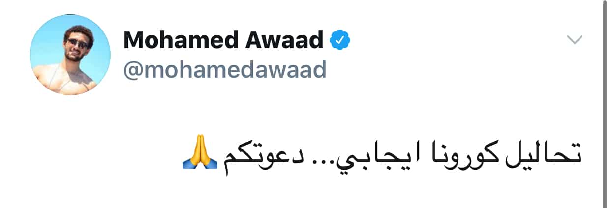 وغرد عواد عبر حسابه الشخصي بأحد مواقع التواصل الإجتماعي تويتر، وكتب: “كورونا إيجابي دعواتكم”.
