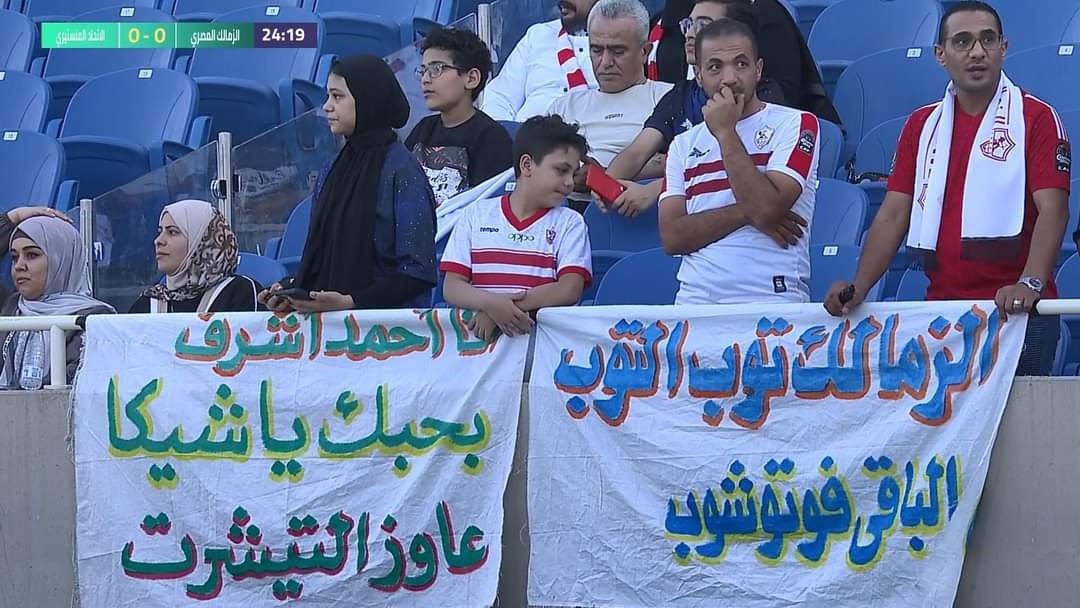 وظهرت عدة لافتات لجماهير الزمالك في المدرجات خلال مباراة الفريق ضد الاتحاد المنستيري التونسي، والمقامة حاليًا في مستهل مشواره في البطولة العربية للأندية.
