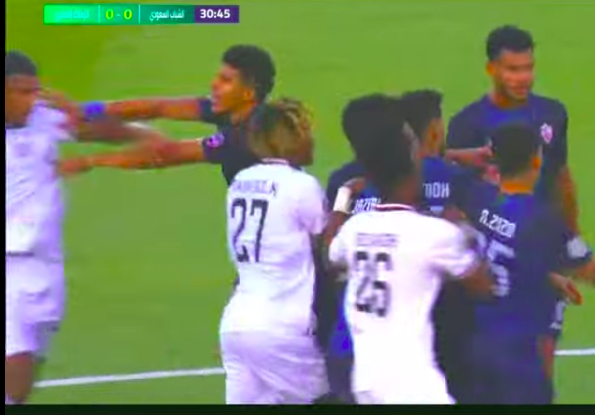 شهدت مباراة الزمالك ضد الشباب السعودي، الجارية الآن، بمنافسات البطولة العربية للأندية اشتباكات عنيفة بين لاعبي الفريقين.