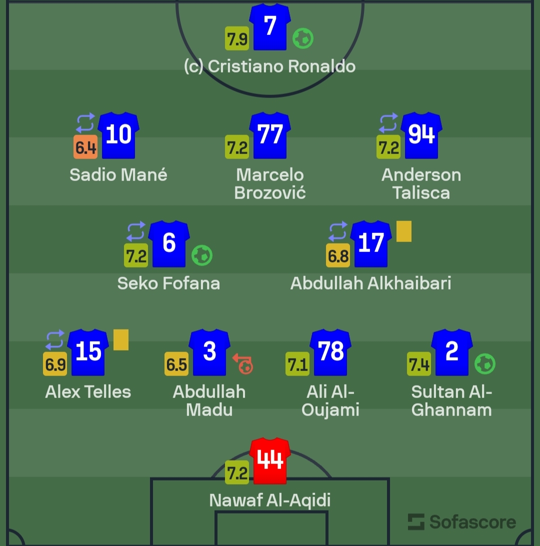 وبحسب شبكة “سوفا سكور”، فإن رونالدو حصل على أعلى تقييم في مباراة النصر والرجاء في ربع نهائي البطولة العربية، بـ7.9 درجة.