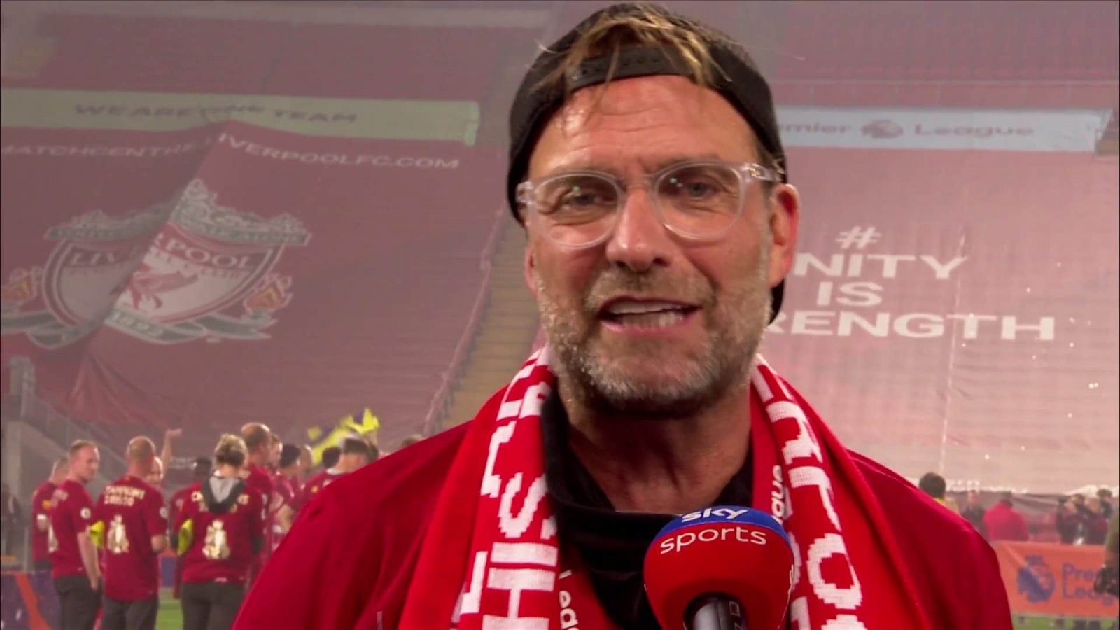 وبعث كلوب رسالة إلى مشجعي ليفربول: “إذا كنت لا ترى أننا نقوم بذلك من أجلك، فلا يمكنني مساعدتك، لقد جعلتنا سعداء، يجب علينا جميعًا الاحتفال في المنزل، وعندما ينتهي هذا الفيروس (كورونا)، سيكون لديّنا حفلة”.