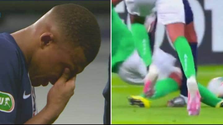 وحدثت إصابة مبابي إثر التدخل المتهور من مدافع سانت إيتيان، لويك بيرين، على ساق نجم بي إس جي وهو ما أدى أيضًا إلى التواء كاحله، ولم يُكمل المباراة وخرج وهو يبكي في الدقيقة 34، وحل مكانه الإسباني بابلو سارابيا.