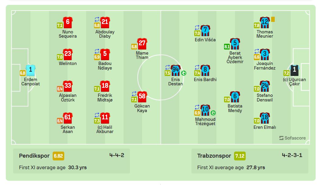 وتمكن محمود حسن تريزيجيه، من تسجيل الهدف الأول لفريقه طرابزون سبور، عند الدقيقة الـ75، قبل أن يغادر تريزيجيه الملعب في الدقيقة الـ82 وحل بدلًا من الإيفواري نيكولاس بيبي.