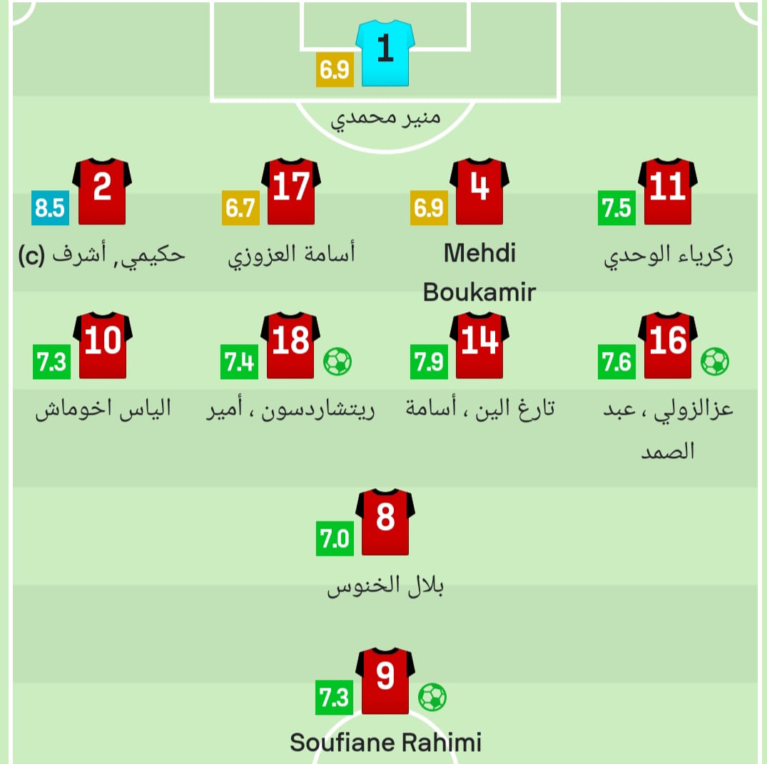 لمس رحيمي، الكرة 22 مرة بدقة تمريرات 88%.