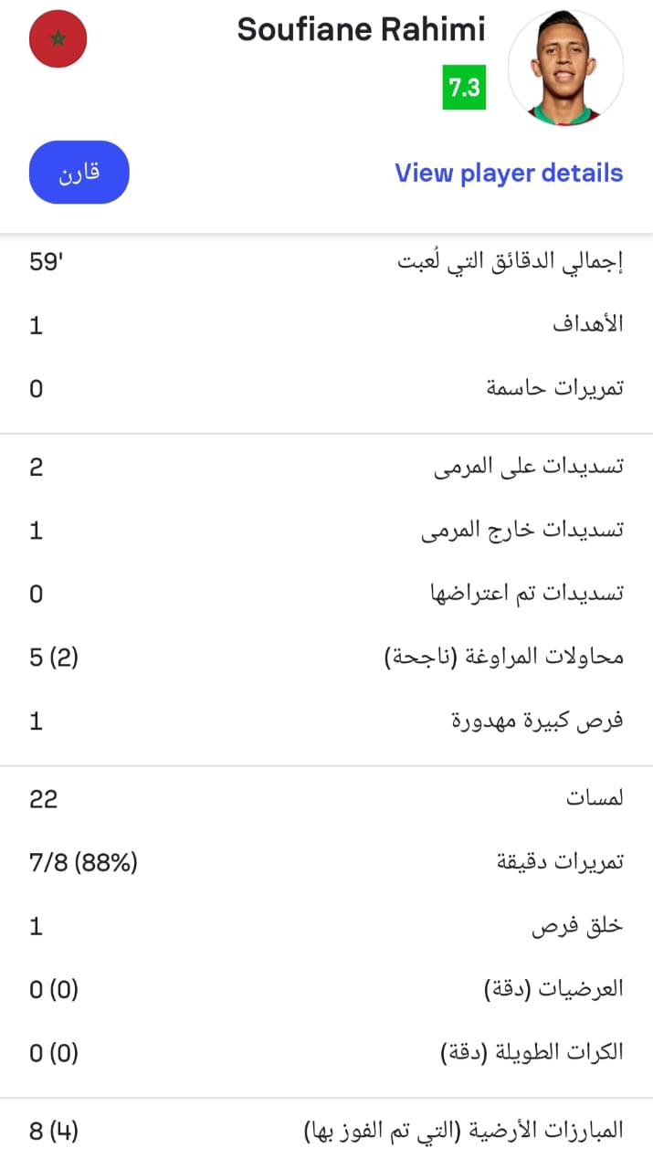 أرقام سفيان رحيمي مع المغرب أمام العراق: