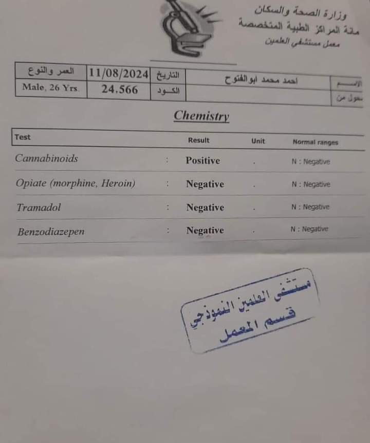 وأظهرت نتيجة التحاليل التي خض لها ثنائي الزمالك أحمد فتوح ومحمد صبحي، إيجابية العينة بالنسبة للأول بتعاطي مخدر الحشيش فيما جاءت سلبية للثاني.