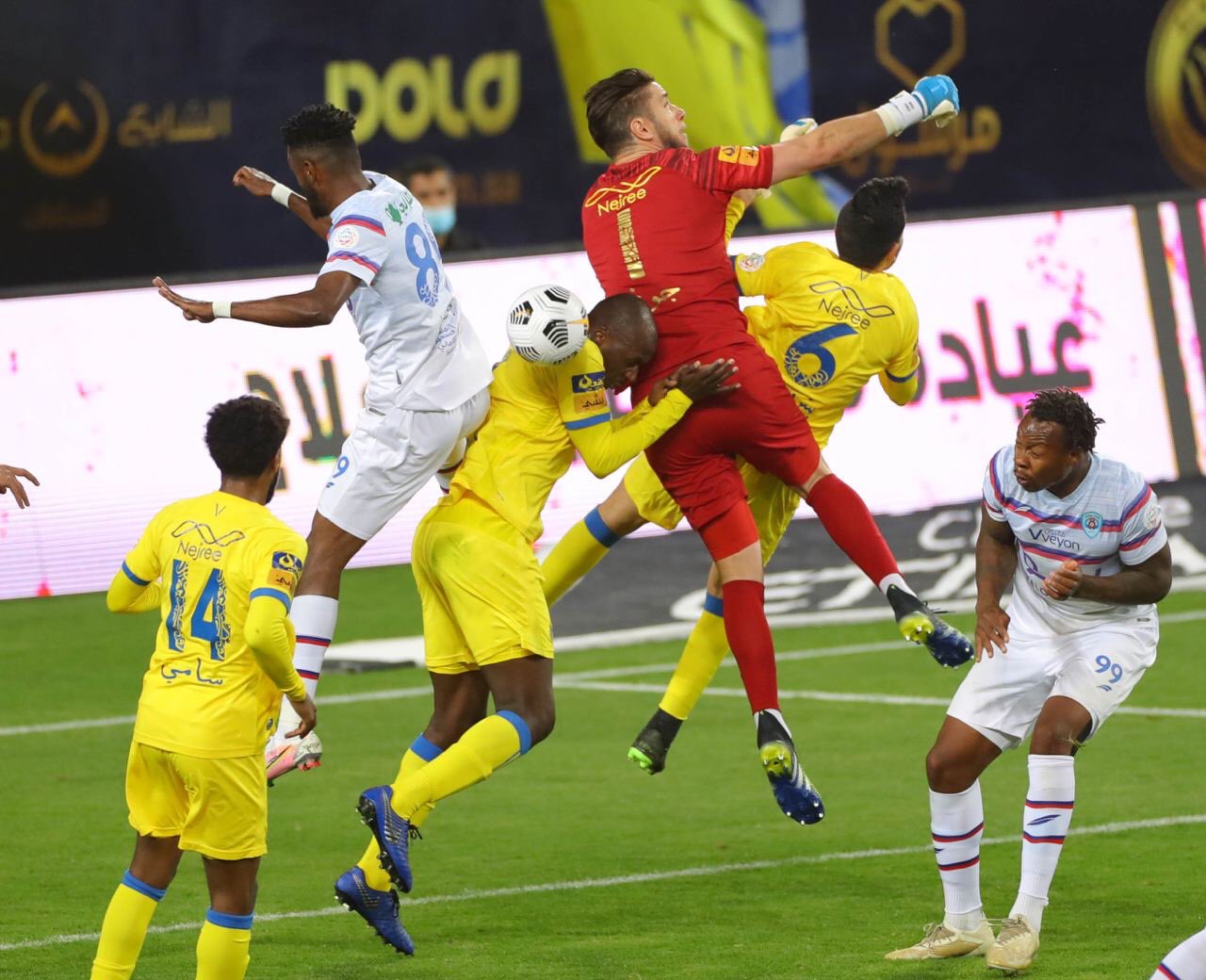 في خط الوسط: علي الحسن، بيتروس، عبد المجيد الصليهم، أمرابط، بيتي مارتينيز.