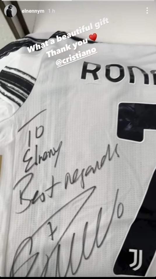 يأتي ذلك حسب ما كشف محمد النني عبر حسابه الشخصي على موقع التواصل الاجتماعي انستجرام، حيث نشر صورة للقميص بتوقيع النجم البرتغالي.