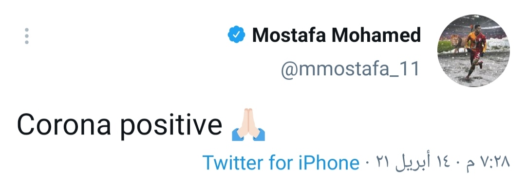 وكتب مصطفى محمد عبر حسابه الرسمي بموقع التواصل الاجتماعي “تويتر” كورونا إيجابي، ليعود بعد دقائق من نشر التغريدة بحذفها مرة أخرى.