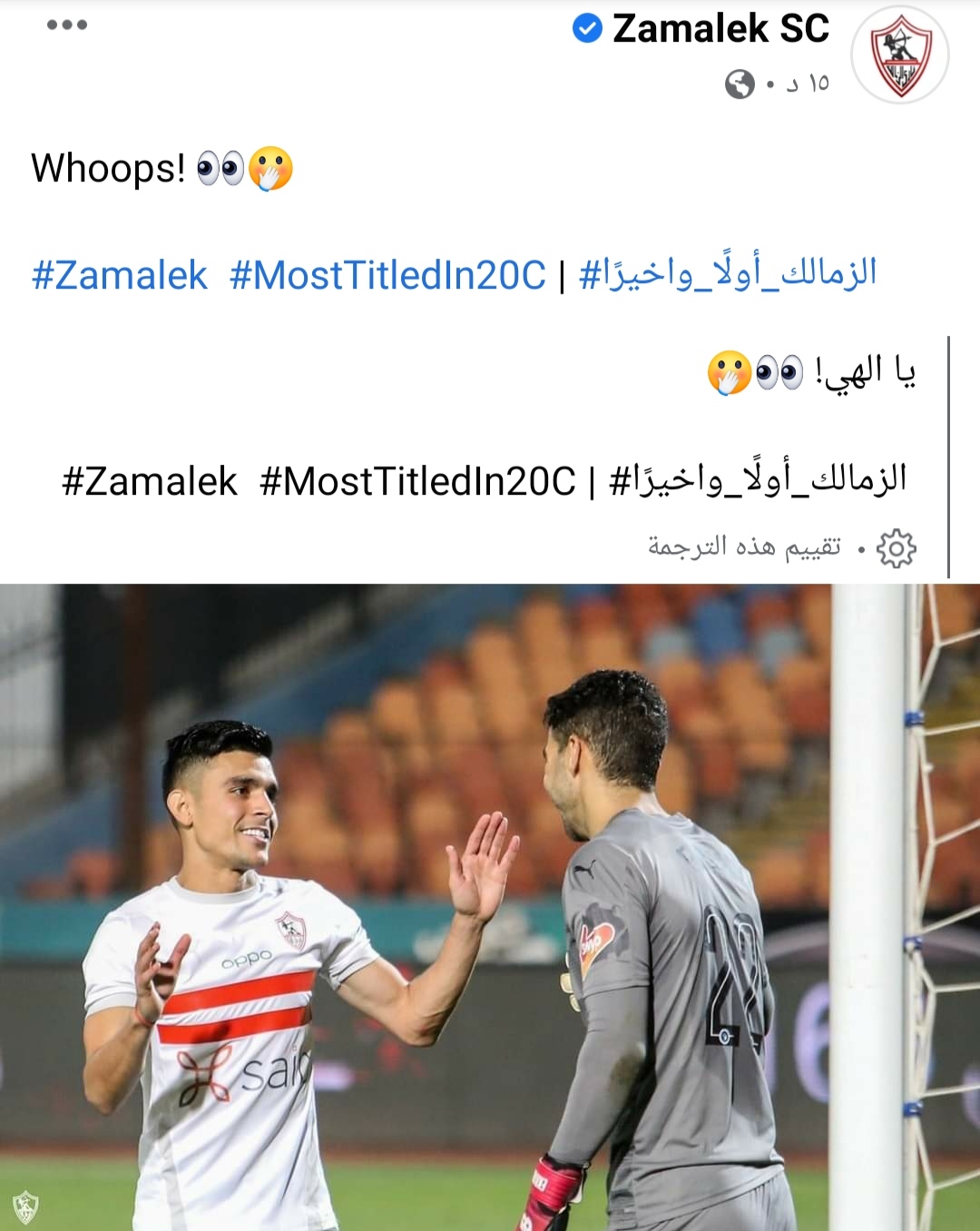 ونشر الحساب الرسمي للزمالك عبر موقع التواصل الاجتماعي “فيس بوك” صورة للمغربي أشرف بن شرقي بعدما سجل في شباك شريف إكرامي حارس بيراميدز في المباراة التي أقيمت بينهما مساء أمس على ستاد القاهرة في الجولة ال19، وانتهت بالتعادل الإيحابي بهدف لكل فريق، وعلق عليها ب”يا إلهي الزمالك أولًا وأخيرًا”.
