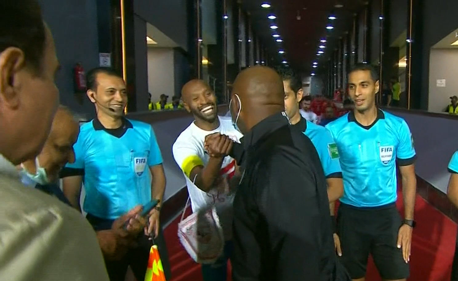 ورصدت عدسات الكاميرات حوارًا باسمًا بين مدرب الأهلي وقائد الزمالك داخل ستاد القاهرة الدولي قبل المواجهة المرتقبة بين الفريقين.