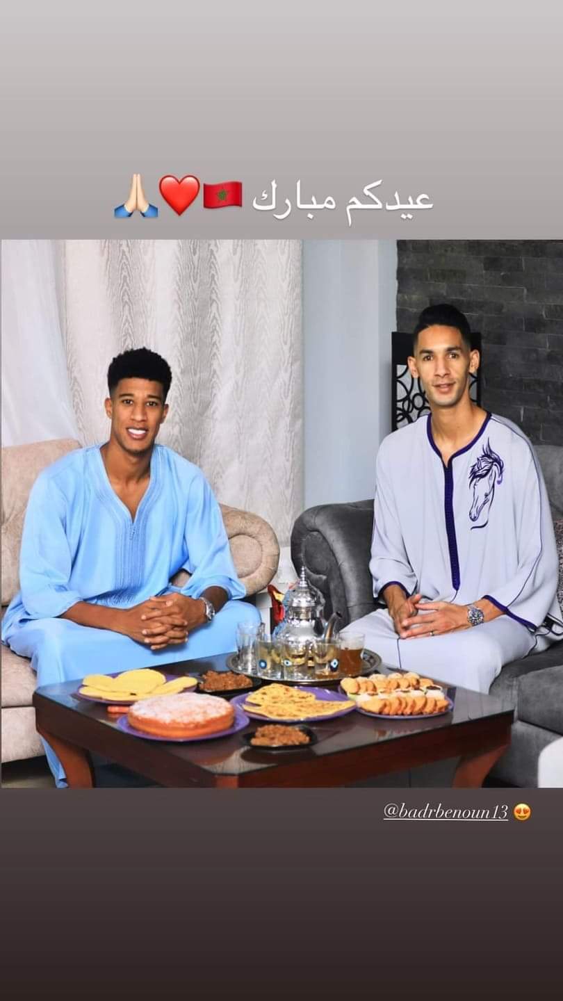 وقام المغربي حميد أحداد بنشر صورة تجمعه بنجم الأهلي بانون، وهما يرتديان الزي المغربي، عبر حسابه الشخصي على موقع التواصل الاجتماعي انستجرام، وكتب، “عيد فطر مبارك”.