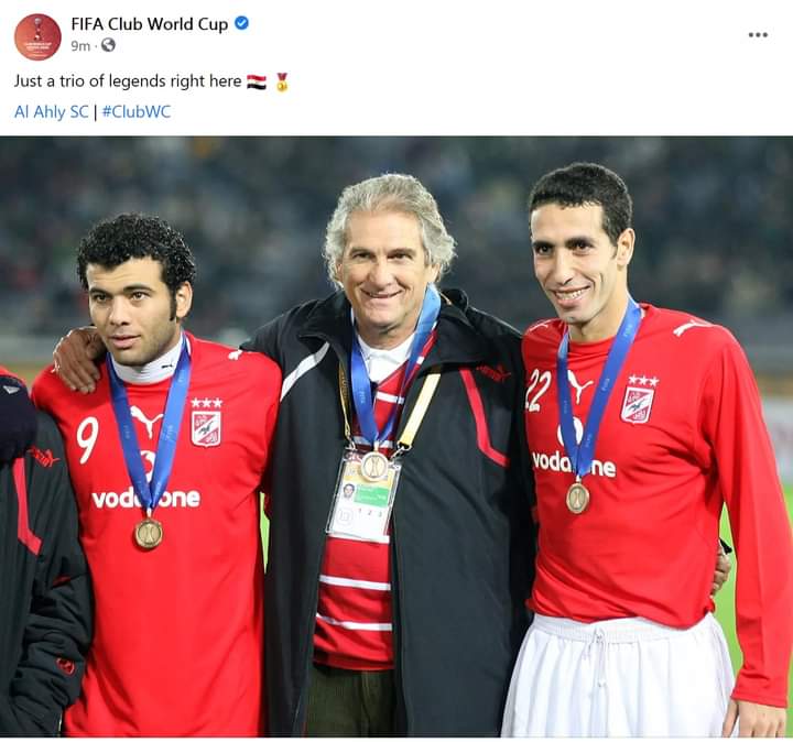 ونشر فيفا عبر حسابه الرسمي على فيسبوك، صورة لثنائي النادي الأهلي السابق عماد متعب ومحمد أبوتريكة، بالإضافة إلى مانويل جوزيه المدير الفني للقلعة الحمراء السابق.