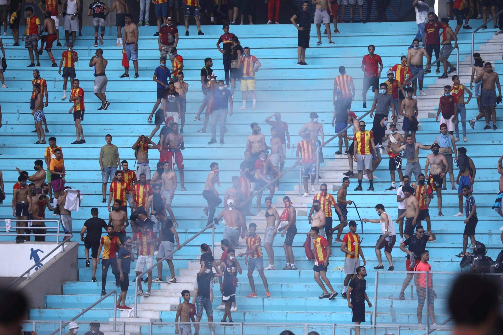 وكانت قوات الأمن التونسية قد قامت بإطلاق قنابل الغاز المسيل للدموع للسيطرة على شغب جماهير نادي الترجي في المدرجات.