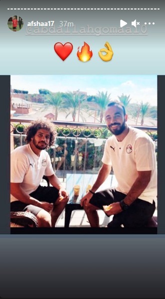 ونشر “أفشة” صورة وهو يبتسم مع زميله عبد الله جمعة نجم الزمالك ووضع إيموشن “قلب ونار”، وذلك للرد على سخرية الأخير المعتادة من الأهلي بعد خسارة المارد الأحمر من الترجي التونسي في نهائي بطولة دوري أبطال إفريقيا 2018.
