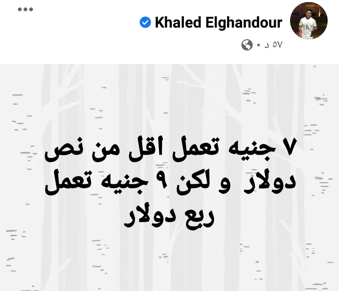 وأضاف: “7 جنيه تعمل أقل من نص دولار و لكن 9 جنيه تعمل ربع دولار”.