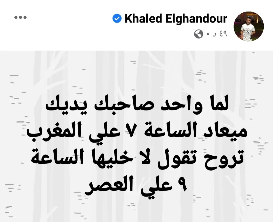 وكتب الغندور عبر حسابه الرسمي بموقع التواصل الاجتماعي “فيس بوك” لما واحد صاحبك يديك ميعاد الساعة 7 على المغرب تروح تقول لا خليها الساعة 9 على العصر”.