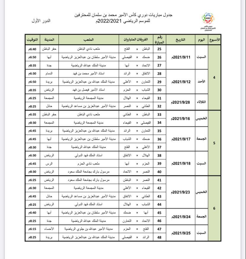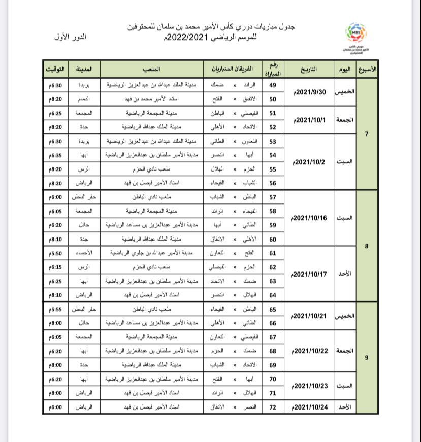 أعلنت لجنة المسابقات في الاتحاد السعودي لكرة القدم، عن جدول مباريات الدوري السعودي للمحترفين الموسم الجديد 2021-2022.