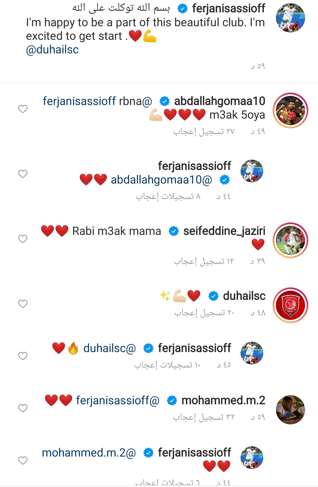 ونشر فرجاني ساسي صورة له عبر موقع التواصل الاجتماعي “انستجرام” بقميص الدحيل القطري وعلق عليه ب”بسم الله توكلت على الله، يسعدني أن أكون جزء من نادي الدحيل، ومتحمس لذلك”.