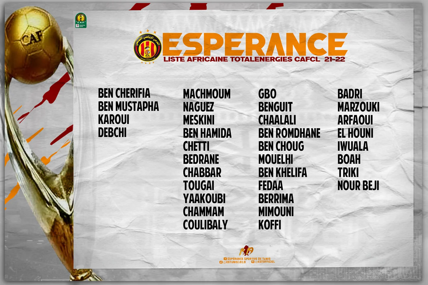 أعلن نادي الترجي الرياضي التونسي قائمة الفريق الكروي الأول والمشاركة في بطولة دوري أبطال أفريقيا خلال الموسم الرياضي الجديد 2021 والتي تضم 34 لاعبًا.