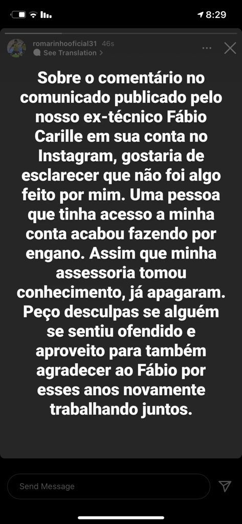 وأوضح رومارينهو عبر حسابه على موقع التواصل الاجتماعي انستجرام، أنه لم يكتب هذا التعليق في منشور فابيو كاريلي، مشيرًا إلى أن الشخص الذي يُدير حسابه هو من كتبه، عن طريق الخطأ.