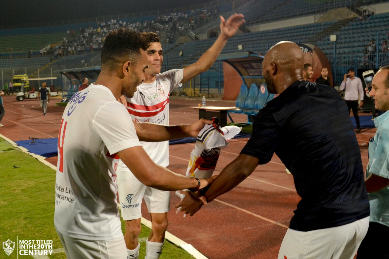 احتفل لاعبي الفريق الأول لكرة القدم بنادي الزمالك والجهاز الفني بقيادة الفرنسي باتريس كارتيرون بالتتويج بلقب الدوري المصري للمرة الثالثة عشر في تاريخه، داخل غرفة خلع الملابس عقب الفوز على الإنتاج الحربي.