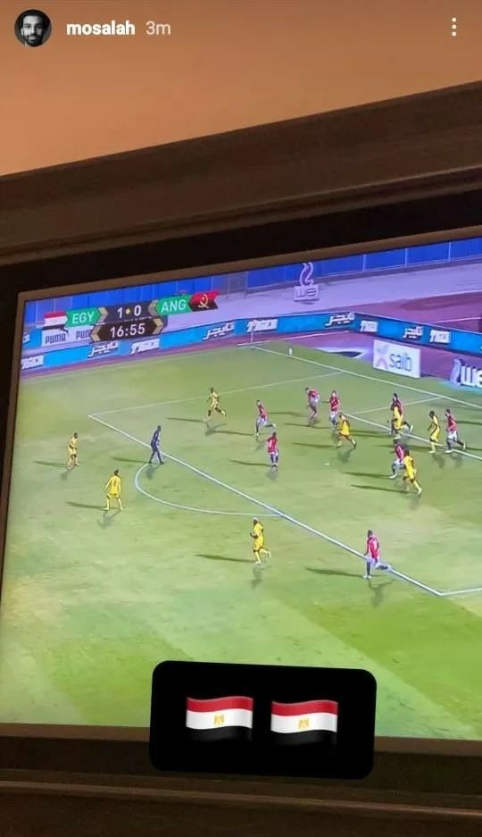 ونشر نجم ليفربول الإنجليزي عبر موقع الرسمي على مواقع التواصل الإجتماعي”إنستجرام” صورة من مباراة الفراعنة أمام المنتخب الأنجولي خلال أحداث الشوط الأولى مرفقاً بعلم مصر في إشارة لدعمه لأبناء النيل لتحقيق نتيجة إيجابية.